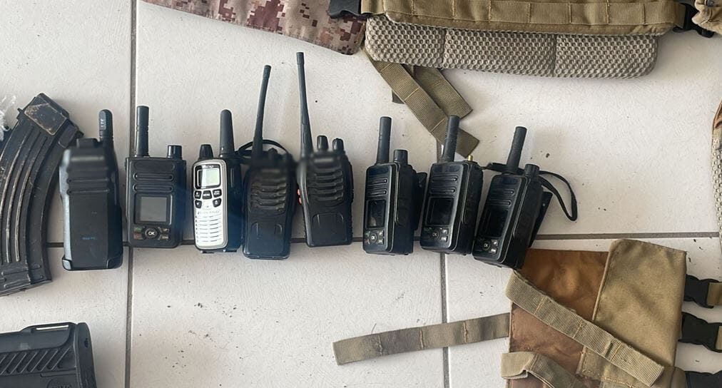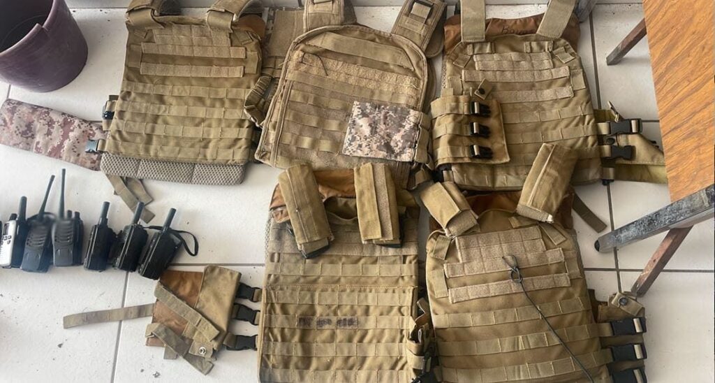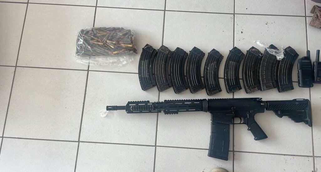Jaumave, Tamaulipas.- Resultado de acciones coordinadas del Gabinete de Seguridad del Gobierno de México, elementos del Ejército Mexicano y la Guardia Estatal aseguraron seis vehículos con reporte de robo y blindaje artesanal, un arma larga, 20 cargadores, 151 cartuchos, 19 chalecos tácticos y ocho equipos de radiocomunicación.