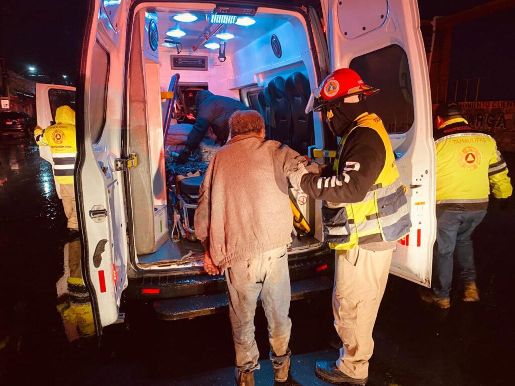El titular de la dependencia, Luis Gerardo González de la Fuente, informó que entre las acciones, dispuso de una ambulancia de urgencias básicas y vehículos de atención rápida cargados con cobijas, bebidas calientes y alimentos quienes iniciaron un recorrido desde la base de Protección Civil del Estado, en busca de familias o personas que pudieran estar vulnerables a los efectos de la actual temporada invernal que impacta en la mayoría de los municipios de Tamaulipas.