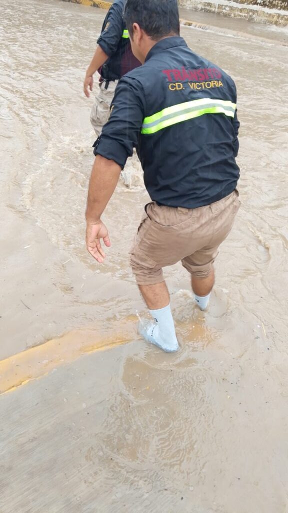 La Dirección de Tránsito Municipal de Victoria que dirige Javier Córdova González, puso en marcha una serie de acciones de prevención, ante las fuertes lluvias registradas en esta Capital, durante las últimas 24 horas, lo que obligó a cerrar el paso a vehículos y personas en el vado del 17, donde una unidad de la corporación hizo guardia desde temprana hora.