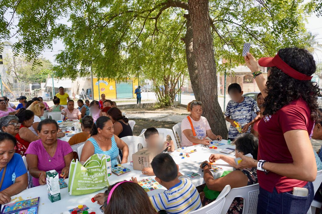 Las actividades incluyeron espacios recreativos para niñas y niños, así como la lotería comunitaria con entrega de productos de la canasta básica.