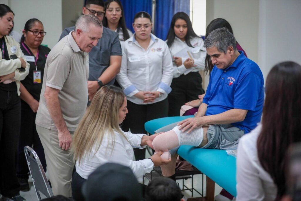 Reynosa, Tamaulipas.– Con el propósito de fortalecer la atención terapéutica que se brinda a personas con discapacidad o en proceso de recuperación física, el Sistema DIF Tamaulipas que preside la doctora María de Villarreal, lleva a cabo una serie de capacitaciones especializadas dirigidas a fisioterapeutas de los Centros de Rehabilitación Integral (CRI) y Unidades Básicas de Rehabilitación (UBR) del estado.