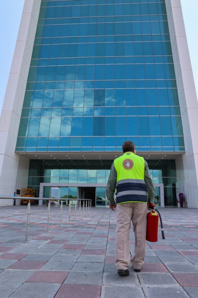 La Torre Bicentenario cuenta con 225 extintores de polvo químico seco distribuidos estratégicamente, además de 15 extintores de CO₂ y 7 de espuma, lo que fortalece la capacidad de respuesta ante distintos tipos de conatos de incendio.