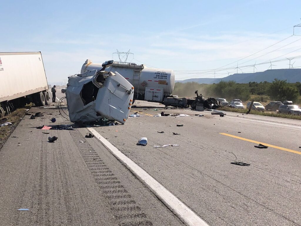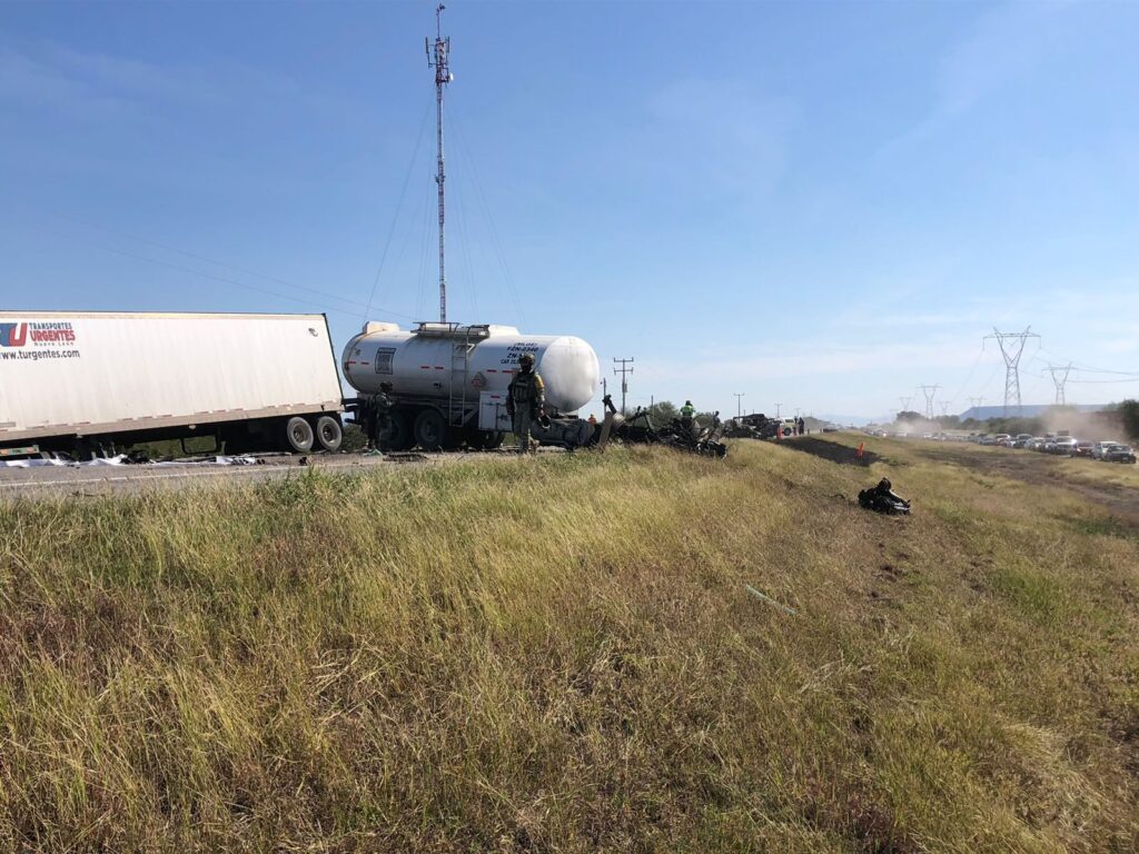 Ocurrió en el km 36 de la carretera Victoria-Zaragiza, en el que participaron un trailer doble remolque, una pipa, y un carro donde quedaron 4 personas calcinadas.