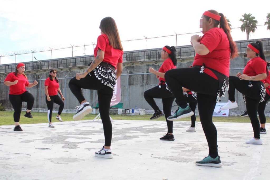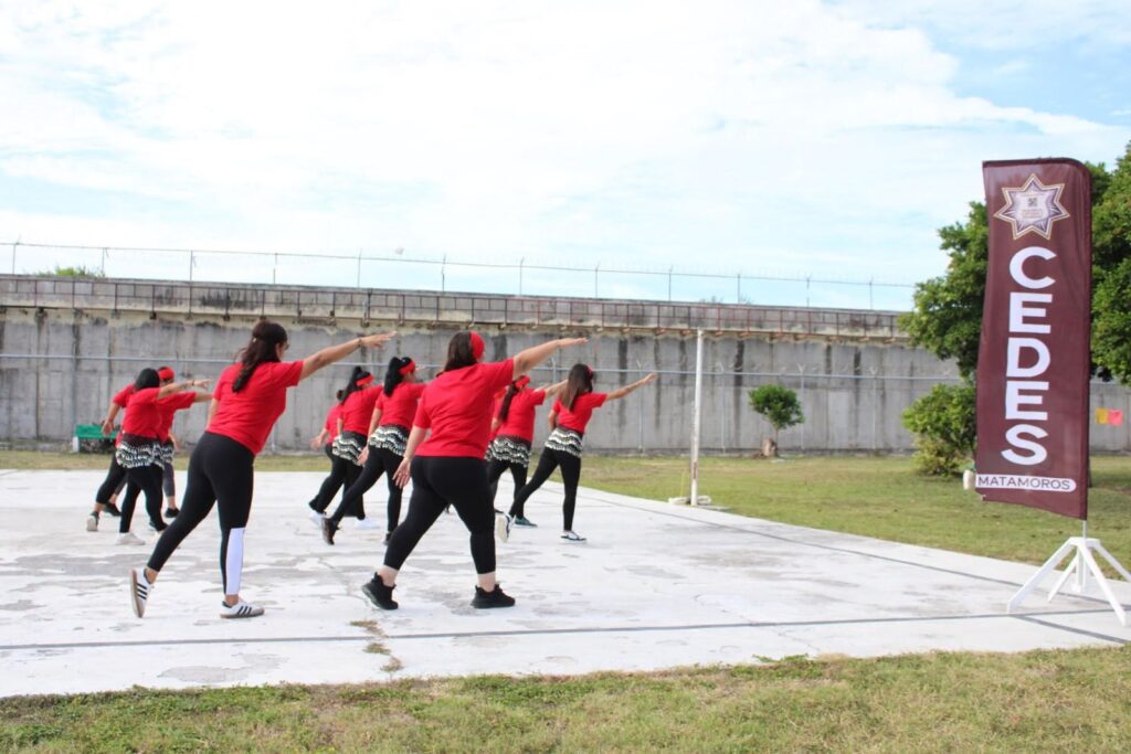 Matamoros, Tamaulipas.- Con música y movimiento corporal, el Centro de Ejecución de Sanciones (CEDES) de Matamoros llevó a cabo una clase de zumba dirigida a mujeres privadas de la libertad, como parte de una estrategia para fortalecer su bienestar físico y emocional.