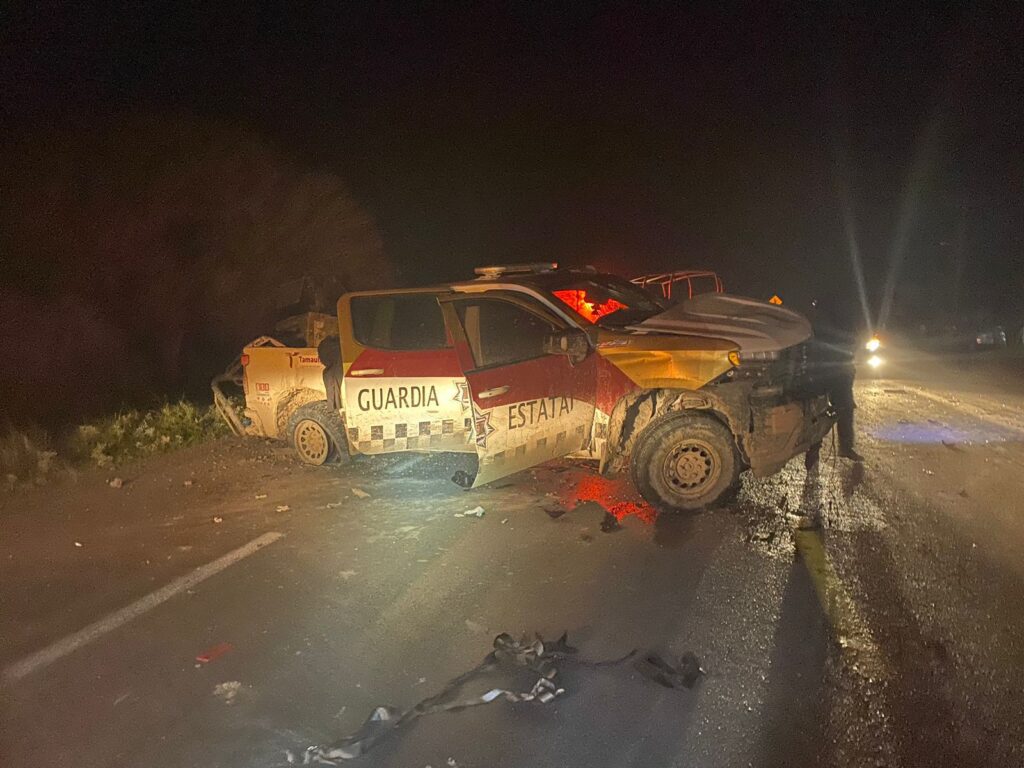 Autoridades detectaron una camioneta con logotipos de la Guardia Estatal circulando en dirección a Matamoros, la cual posteriormente estuvo involucrada en una colisión con un tractocamión.