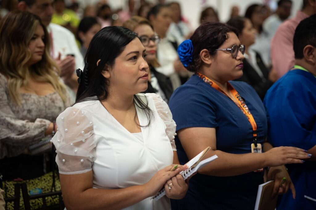 “La primera cara que vemos las personas que tenemos una situación de dolor, de riesgo, de violencia o de migración es la de ustedes. Es la primera cara con la que se encuentra una persona que tiene miedo, que está asustada, angustiada y que no sabe qué va a hacer. La cara amistosa, la cara de apoyo, de conocimiento, es la de ustedes. Es un gusto verlos convocados en este Segundo Congreso Estatal de Trabajo Social con el mismo interés, cariño, amor, vocación y pasión por el servicio y la atención”, expresó.
