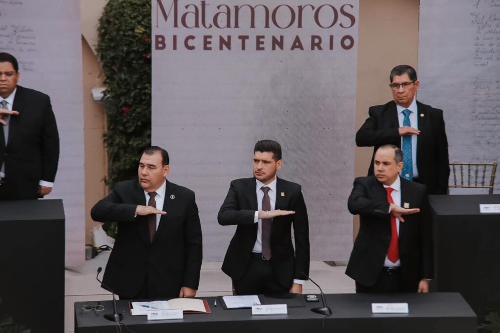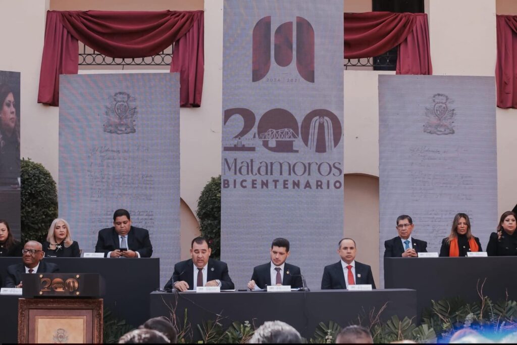 H. Matamoros, Tamaulipas.- Matamoros está de fiesta. En el marco de la conmemoración del 200 aniversario de la fundación de la ciudad, se llevó a cabo la Tercera Sesión Solemne de Cabildo, encabezada por el presidente municipal, Beto Granados. Evento al que acudió el Secretario de Finanzas del Gobierno del Estado, Carlos Irán Ramírez González, en representación del Gobernador de Tamaulipas, Américo Villarreal Anaya.