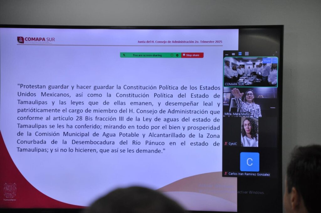 En el marco de la reunión, en la que participaron el alcalde de Madero, Erasmo González Robledo; el representante del Gobierno de Tampico, Guillermo Cuadra Parga; y el gerente general del organismo, Francisco González Casanova, se tomó protesta a los representantes de la Secretaría de Administración del Estado de Tamaulipas y de la Secretaría de Finanzas de Tamaulipas como nuevos integrantes del consejo.