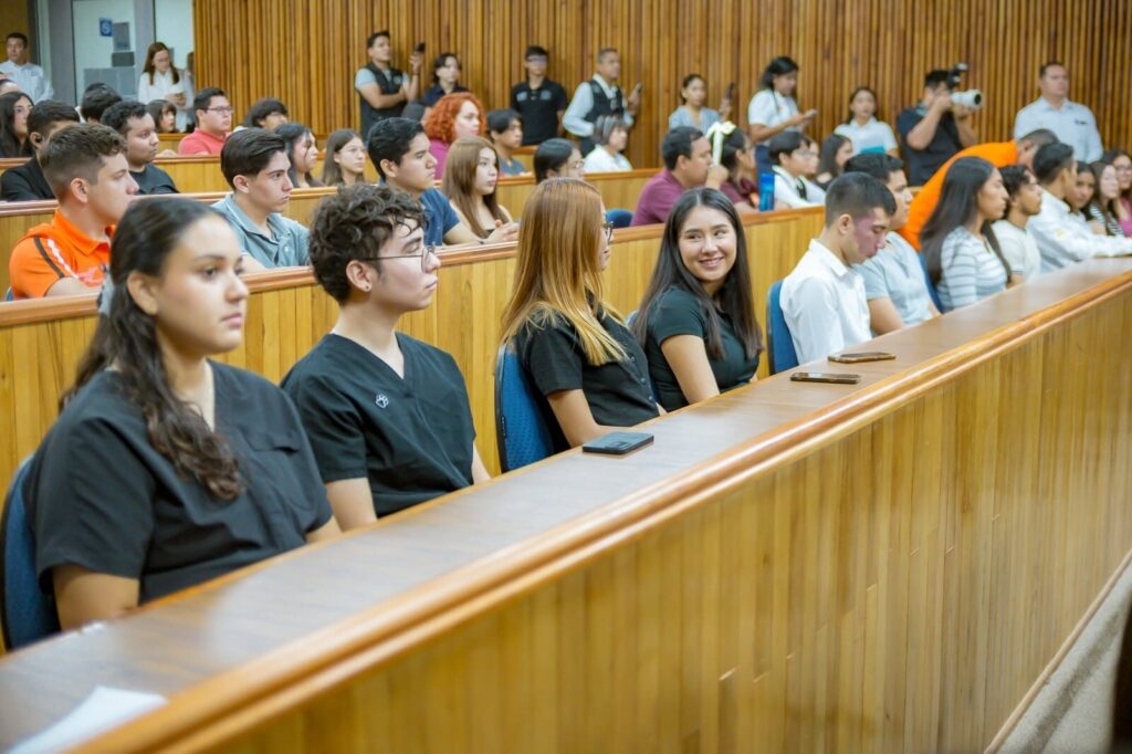 El Centro de Excelencia de la universidad fue el espacio donde se efectuó esta ceremonia, encabezada por Miguel Ángel Valdez García, secretario de Educación de Tamaulipas, y Dámaso Anaya Alvarado, rector de la Universidad Autónoma de Tamaulipas, ante la presencia de las y los universitarios beneficiados.