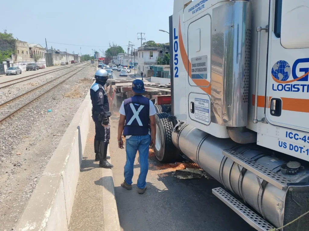 La unidad perteneciente a la empresa GS-Logistics se encontraba sobre el puente del Canal de la Cortadura, lugar desde donde el operador solicitó el apoyo de la Guardia Estatal.