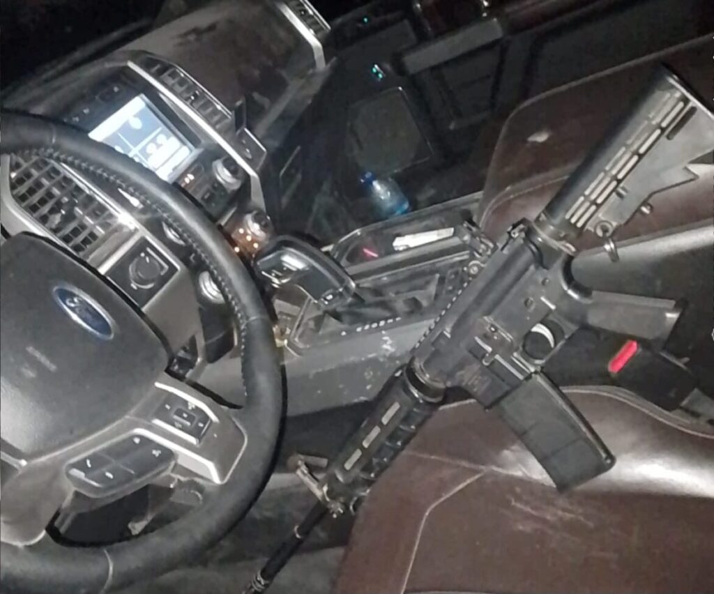 Tras la inspección de la unidad, se confirmó el reporte de robo en el extranjero, así como el aseguramiento de un fusil con un cargador abastecido con 15 cartuchos hábiles calibre .223.