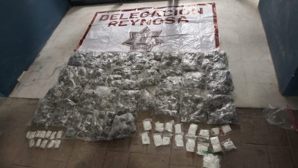 Río Bravo, Tamaulipas.- Un aseguramiento de narcóticos, un arma de fuego y equipo de radiocomunicación fue realizado por personal de la Guardia Estatal, tras una persecución registrada en calles de la colonia Morelos, en el municipio de Río Bravo.