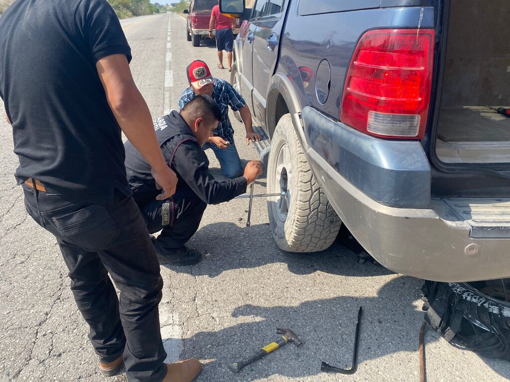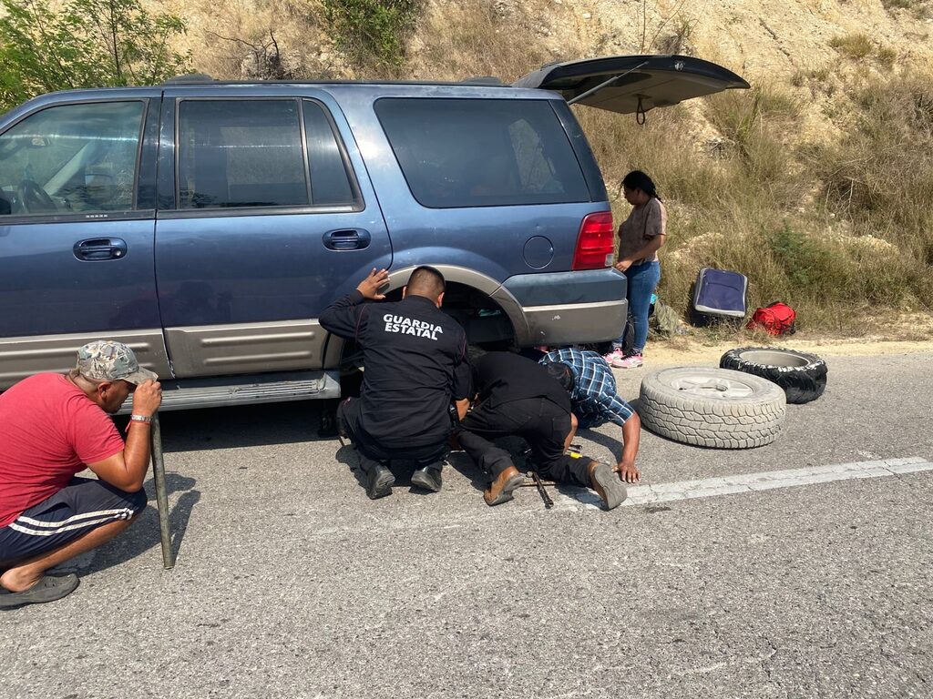 Soto la Marina, Tamaulipas.- Al realizar recorridos de seguridad y vigilancia sobre la Carretera Federal 180 Costera del Golfo personal de la Guardia Estatal de Apoyo Carretero comisionado a la Estación Segura Zamorina brindó apoyo a un grupo de viajeros varados sobre el kilómetro 92.
