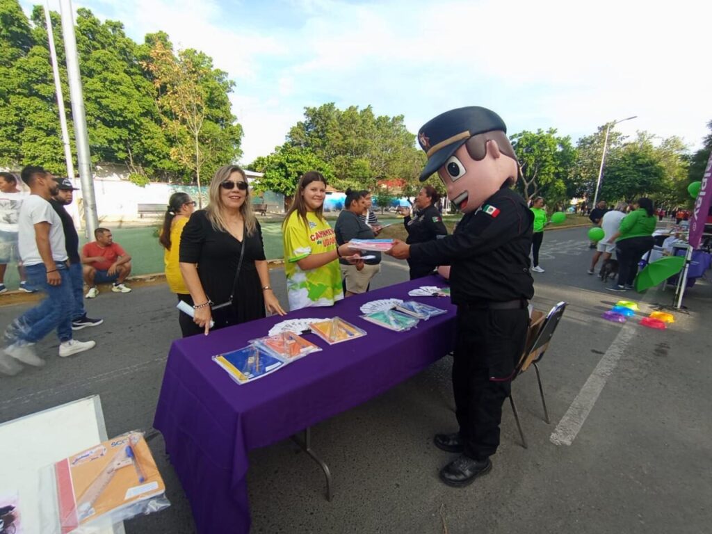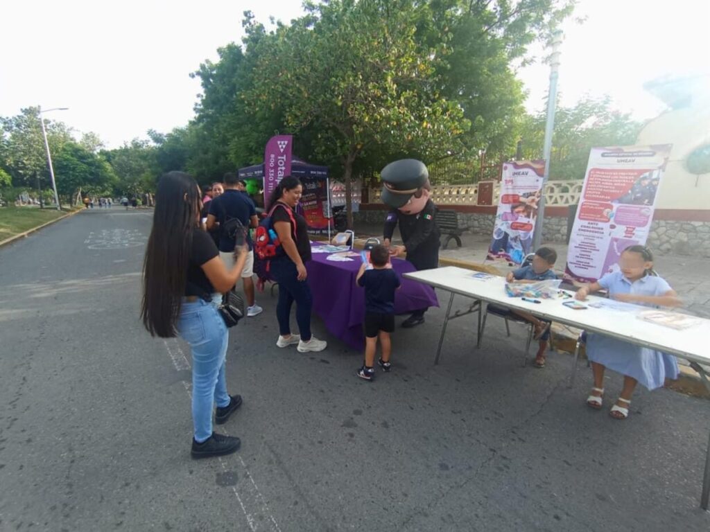 En este punto, se mantuvo la cercanía con familias que se encontraban haciendo uso de la vía pública, a quienes entregaron folletos informativos, violentómetros y pláticas para darles a conocer las funciones de la Delegación Estatal de Atención a la Violencia Familiar y de Género.