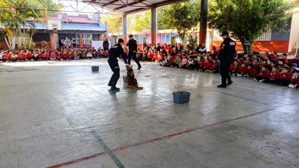 La actividad se llevó a cabo con la participación de un binomio canino integrado por el ejemplar Max, especializado en narcóticos e intervención policial.