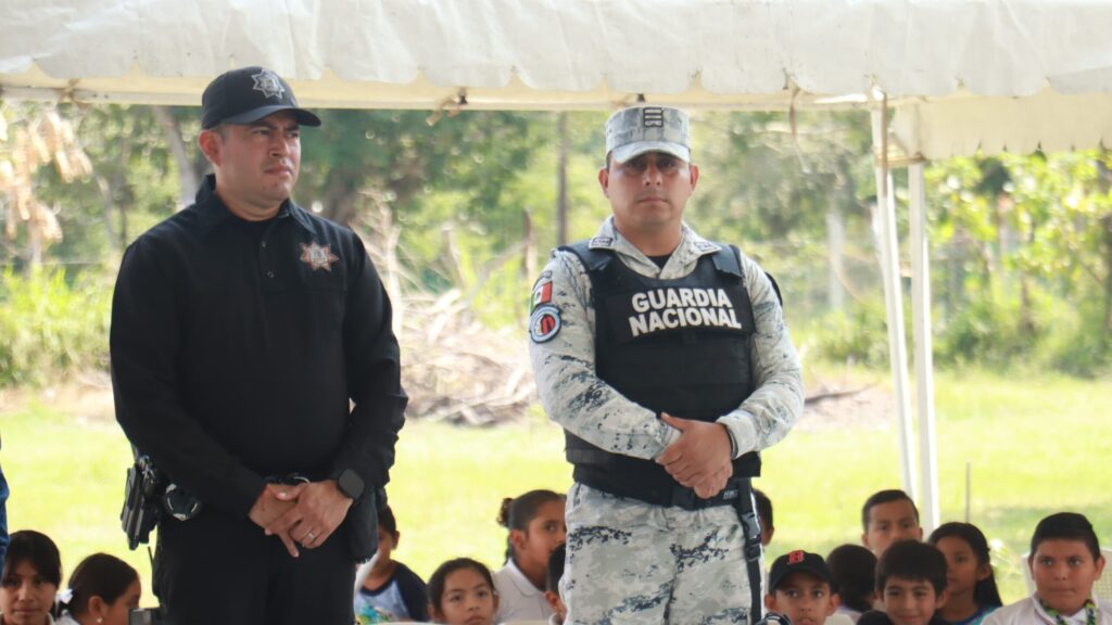 Altamira, Tamaulipas.– Con actividades deportivas, pláticas formativas y una jornada de vacunación, personal de la Guardia Estatal participó en la “Jornada por la Paz: Que ruede el balón por la paz”, realizada en el ejido Aquiles Serdán, como parte de acciones de proximidad social y prevención.