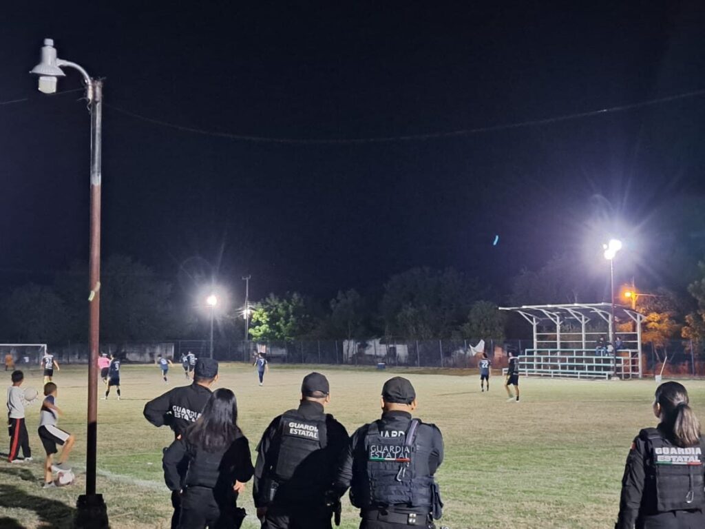 Güémez, Tamaulipas.– Como parte de las acciones de proximidad social que impulsa la Guardia Estatal en los municipios de Tamaulipas, se llevó a cabo una actividad deportiva con adolescentes del ejido Santa Gertrudis, en la Unidad Deportiva “Las Canchitas”, en Güémez.