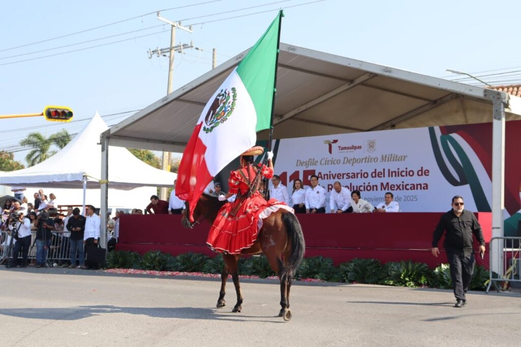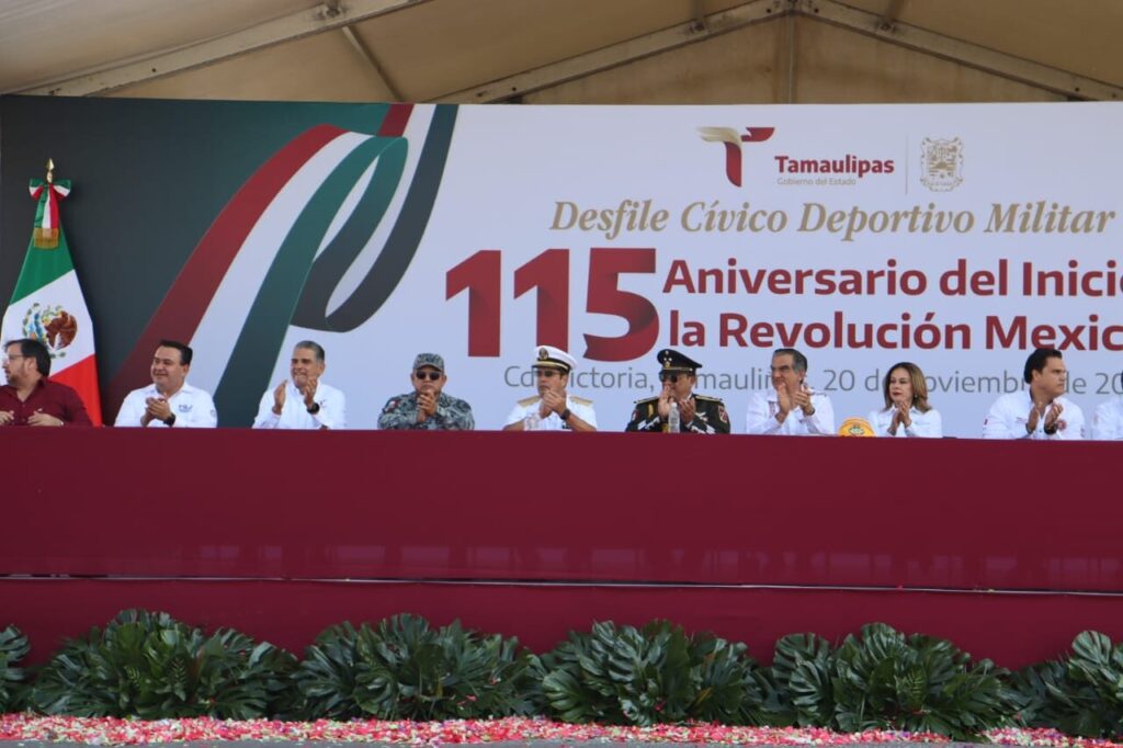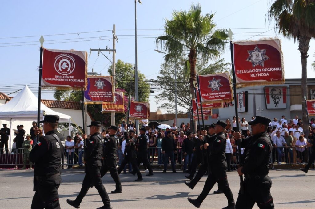 Ciudad Victoria, Tamaulipas.- Con una participación de 724 elementos, la Guardia Estatal se sumó al Desfile Conmemorativo del 115 Aniversario del Inicio de la Revolución Mexicana, el cual congregó a 53 contingentes entre escuelas, deportistas, fuerzas de seguridad, rescate, protección civil, entre otros.