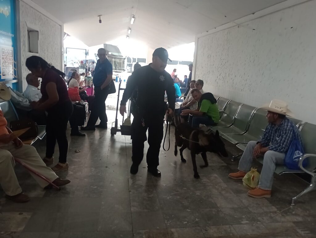 Durante el operativo se efectuó un barrido preventivo en diversas áreas de la terminal, incluyendo pasillos, sala de espera, andenes y unidades de transporte de pasajeros.