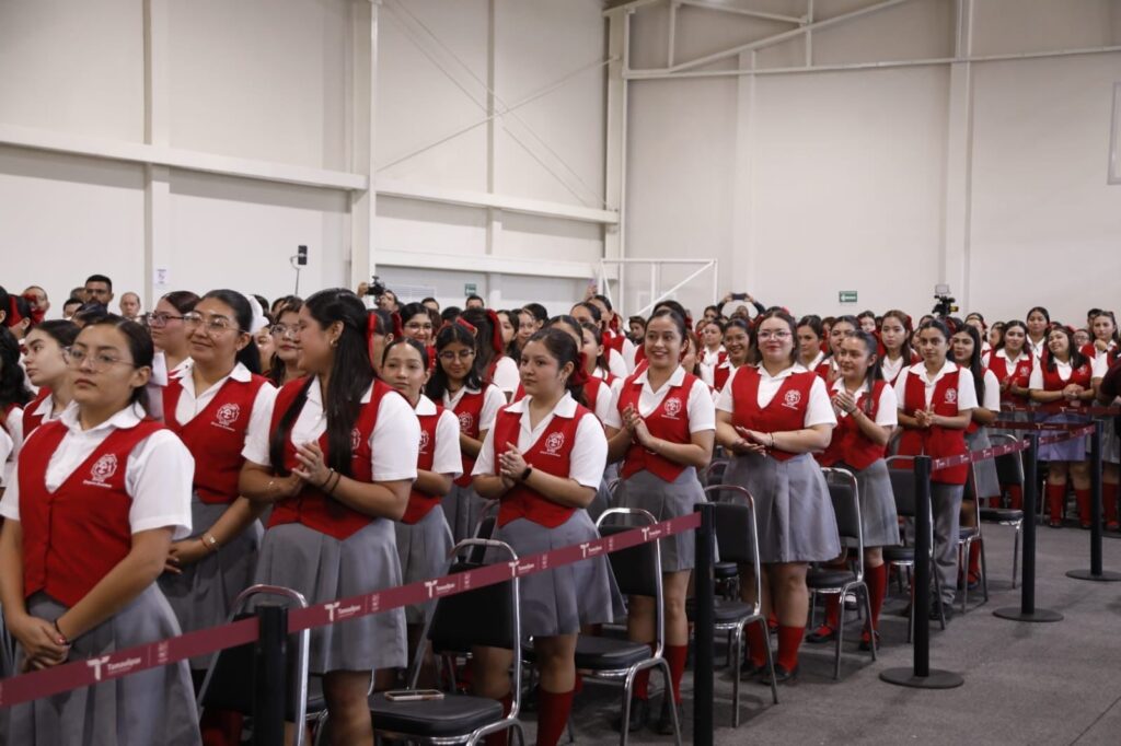 En la ceremonia cívica de honores, ante más de 400 alumnas, agregó que en Tamaulipas la transformación comienza en la escuela, “y a ustedes les corresponde garantizarlo”, afirmó.