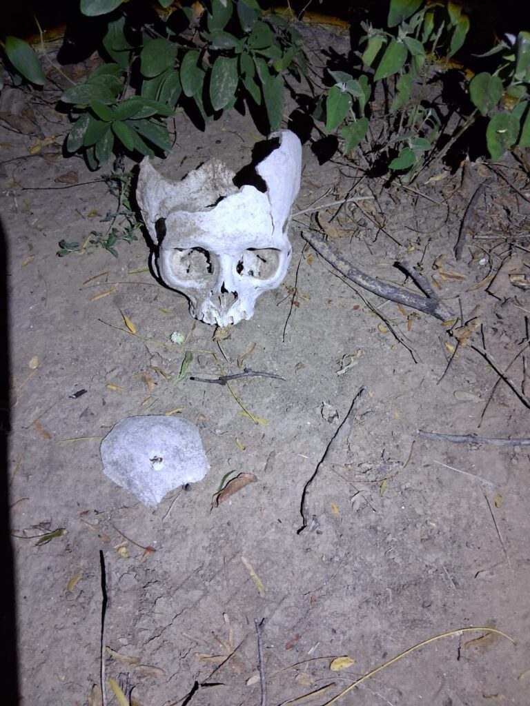Entre los restos encontrados se identificó un cráneo perteneciente a una persona del sexo masculino, al que le falta parte de la bóveda craneana, el maxilar inferior y la mayoría de las piezas dentales, así como fragmentos de costillas, un coxis y un fémur.