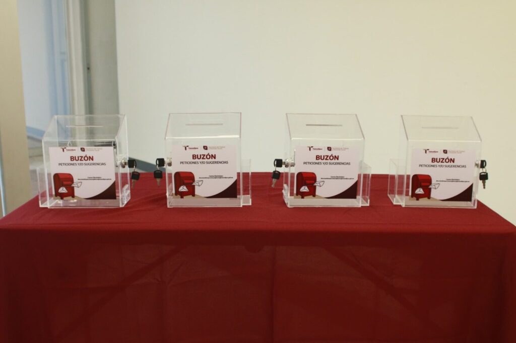 Ciudad Victoria, Tamaulipas.- Para brindar una mejor atención a los usuarios de las Juntas de Conciliación y Arbitraje, ubicadas en las oficinas gubernamentales Tiempo Nuevo, la Secretaría del Trabajo y Previsión Social, que encabeza, Luis Gerardo Illoldi Reyes y siguiendo la visión humanista del Gobierno de la Transformación que dirige, Américo Villarreal Anaya, realizó la instalación de buzones de peticiones y sugerencias.