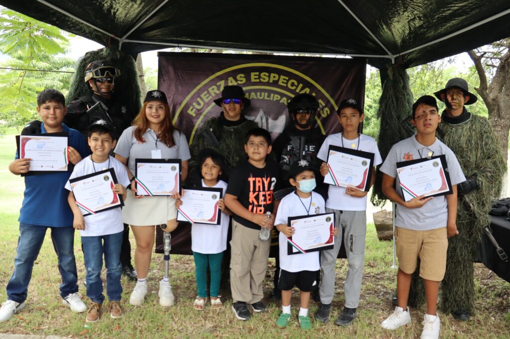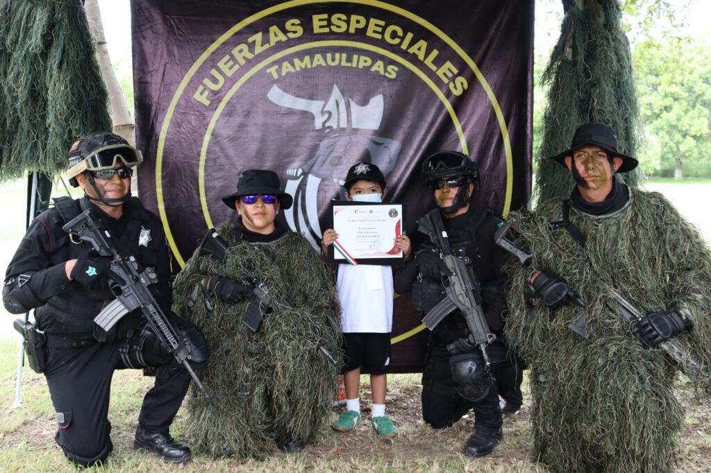 En el marco del denominado ‘’Mes Dorado’’, dedicado a la concientización del cáncer infantil, niñas y niños pertenecientes a las asociaciones civiles Tías de Corazón, Un Cachito de Luz e Iluminando Corazones a Niños con Cáncer recibieron del secretario de seguridad pública de Tamaulipas un pin con la estrella de la Guardia Estatal, misma que simboliza los valores de esta institución: justicia, disciplina, respeto, vocación, profesionalismo, ética e igualdad; además de un reconocimiento.
