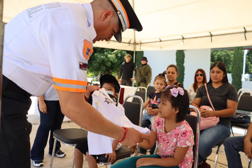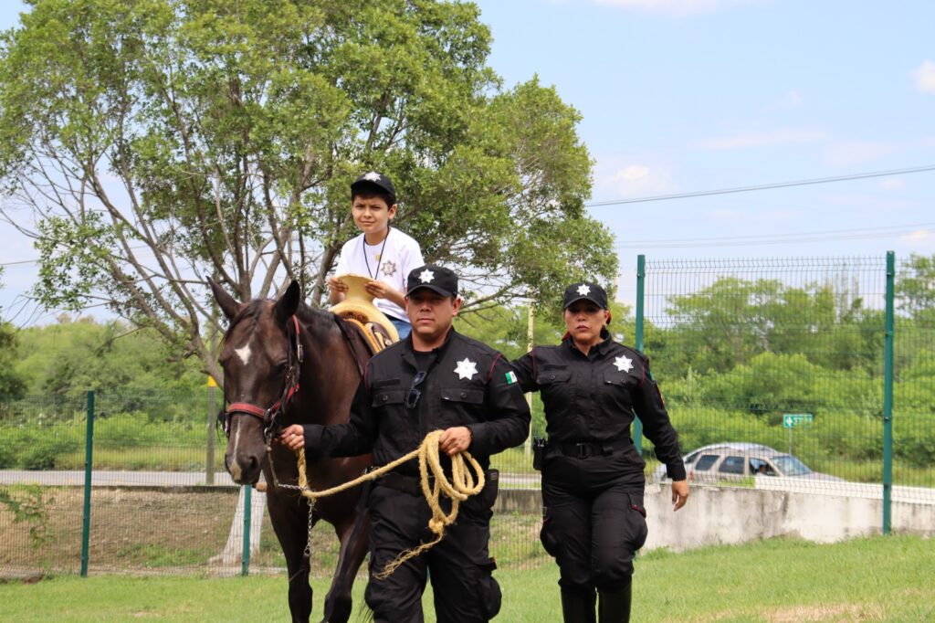 Tras la ceremonia oficial, se trasladaron al Centro de Convivencia Familiar (CECOFAM) donde convivieron con los caballos, jinetes, caninos y manejadores de la Dirección de Agrupamientos Policiales; así como las Fuerzas Especiales de la Guardia Estatal (FEGE), quienes les entregaron un reconocimiento como policía honorario, les mostraron parte del equipo táctico que utilizan e instalaron un espacio pinta caritas.