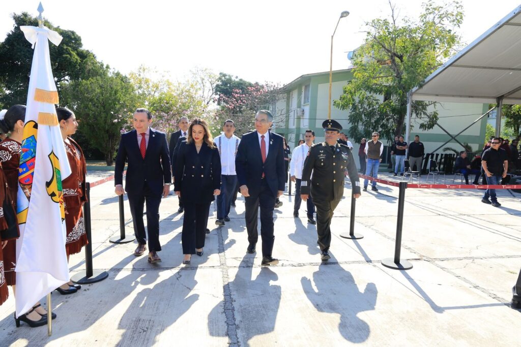 “Acompañamos con todo el orgullo y el sentido de lealtad y pertenencia que produce en cada uno de nosotros la Bandera Nacional, que es el símbolo por excelencia que entraña nuestra mexicanidad, que evoca lo mejor de nuestra historia y que es el estandarte que ha transitado nuestras transformaciones nacionales, representando el heroísmo de hombres y mujeres que se entregaron su vida para que hoy podamos disfrutar el país que tenemos”, manifestó el ejecutivo tamaulipeco.