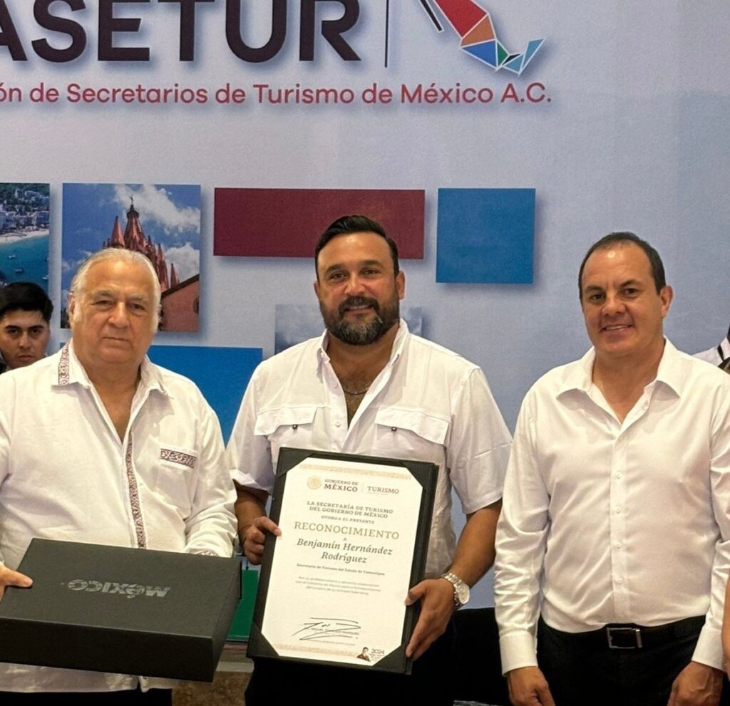 En el marco de la 56ª reunión de la Unión de Secretarios de Turismo de México A.C., realizada en Cuernavaca, Morelos, Miguel Torruco Marqués, secretario federal del ramo, entregó el reconocimiento con base en el trabajo impulsado por el gobierno de Tamaulipas, presidido por Américo Villarreal Anaya.