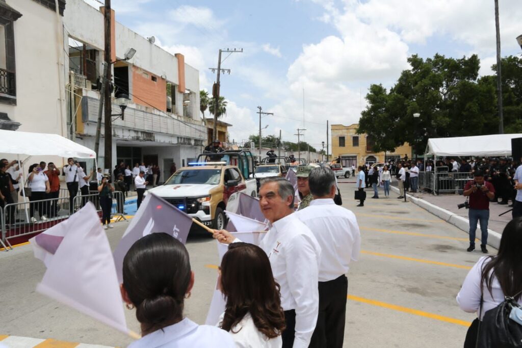 San Fernando, Tamaulipas. – En materia de seguridad pública se trabaja día con día, y esto se refleja en los indicadores que colocan a Tamaulipas entre los diez estados más seguros del país, afirmó el gobernador Américo Villarreal Anaya, al continuar con la entrega de 330 nuevas unidades que se están distribuyendo en todo el estado para reforzar las tareas de patrullaje y vigilancia, en esta ocasión en el municipio de San Fernando y la región.