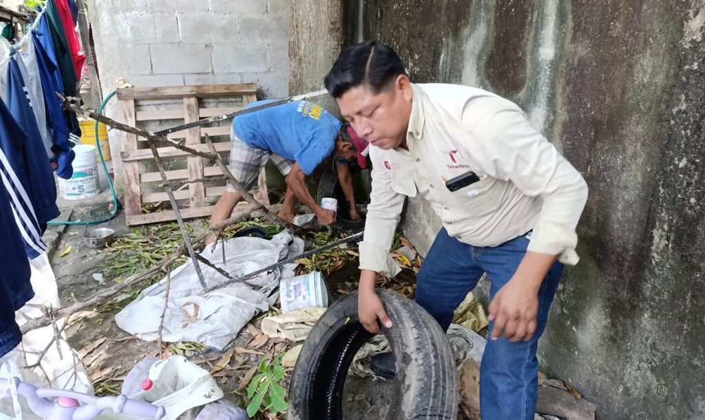 Como parte de las acciones contra el mosquito transmisor del dengue y con la colaboración de la población, se realiza la eliminación de criaderos y la descacharrización para evitar la reproducción del vector, comentó la titular de Salud.