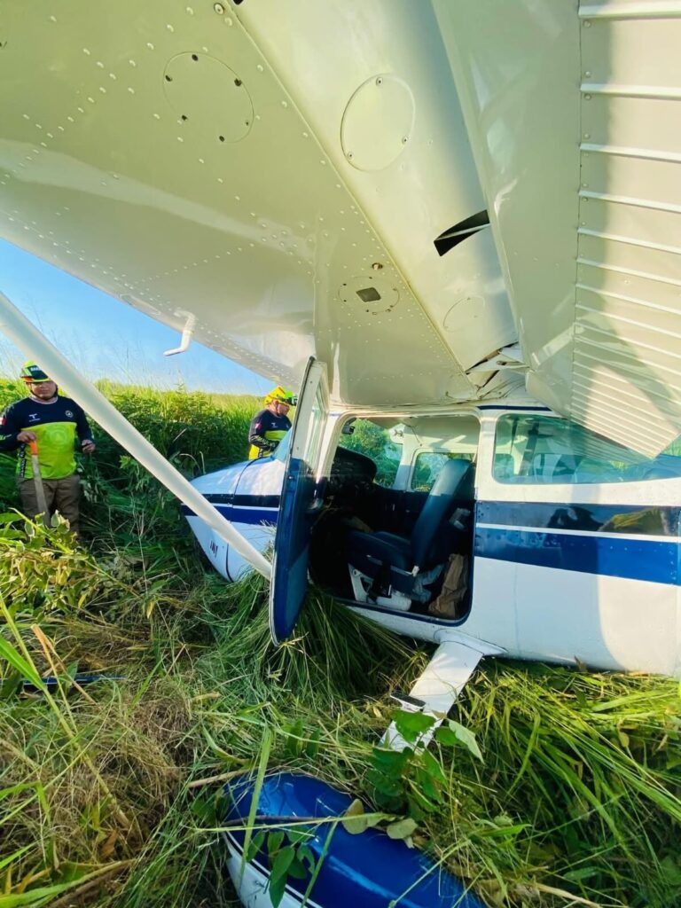 El desploma se debió presuntamente a la pérdida de potencia en el motor de la aeronave, lo que llevó al piloto a realizar un aterrizaje forzoso en zona enmontada.