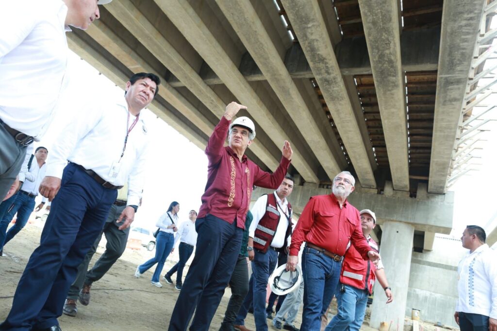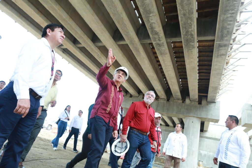 Cepeda Anaya y los responsables de la empresa contratista explicaron que se continúa trabajando en el armado y colado de la estructura del puente y ya se logró la terminación de los terraplenes que dan acceso al puente. Los taludes están protegidos con césped para evitar la erosión, le informaron, entre otros detalles de la construcción.