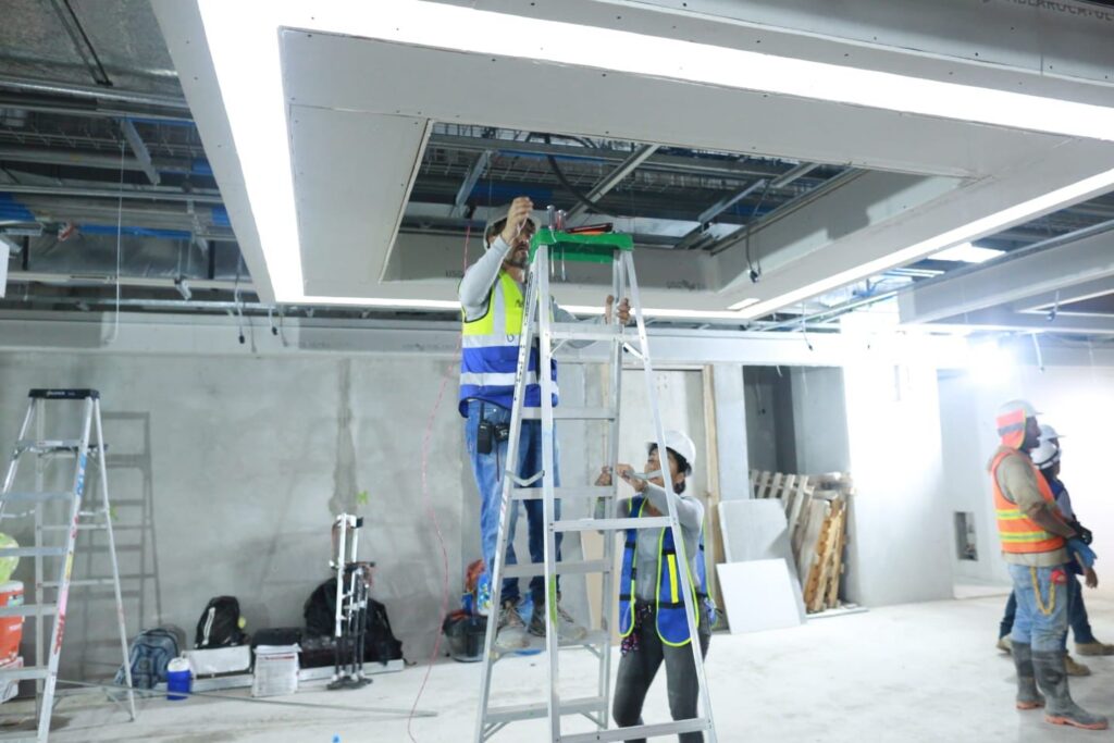 En el complejo de tres edificios de nueve niveles y uno de seis niveles, laboran 1,400 trabajadores de instalación y de obra civil, así como administrativos.