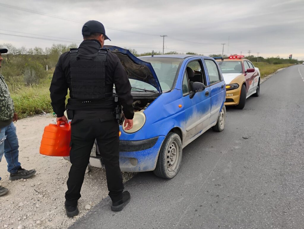Reynosa, Tamaulipas.- Personal de Tránsito Estatal brindó apoyo a dos automovilistas que presentaron fallas mecánicas mientras circulaban por vialidades de alto flujo en Reynosa, como parte de los recorridos de seguridad y vigilancia que se mantienen de manera permanente en la ciudad.