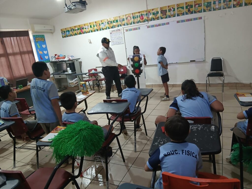 Una de ella fue la jornada de concientización vial celebrada en la Escuela Primaria Ignacio Zaragoza, en la que, con un enfoque de infancia, se difundió al alumnado información referente a las leyes y normas de tránsito.