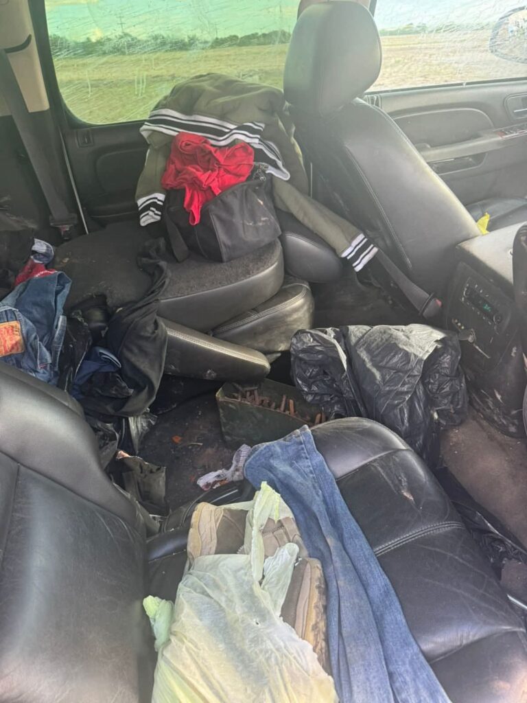 En el interior de la camioneta Suburban se localizó una tabla con números romanos “XIX”, símbolo que podría estar relacionado con la identificación interna de una célula delictiva.