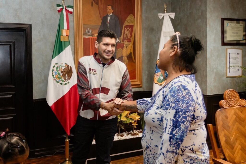 H. Matamoros, Tamaulipas.- El presidente municipal de Matamoros, Beto Granados, recibió la visita de Estefanía Roberta, una niña de 11 años de la comunidad de Higuerillas, quien acudió acompañada de su abuelita, Lina Isabel Reyna.